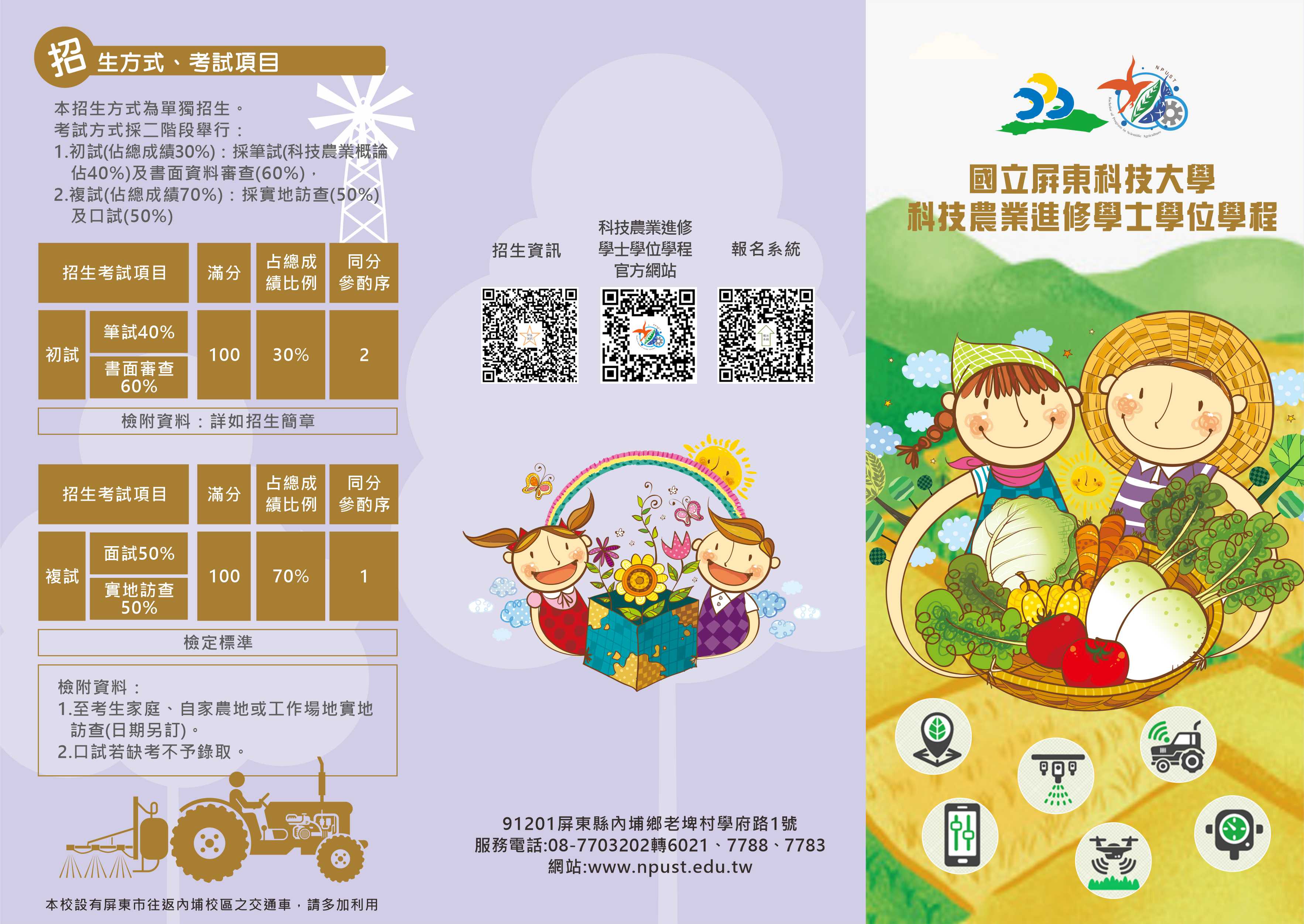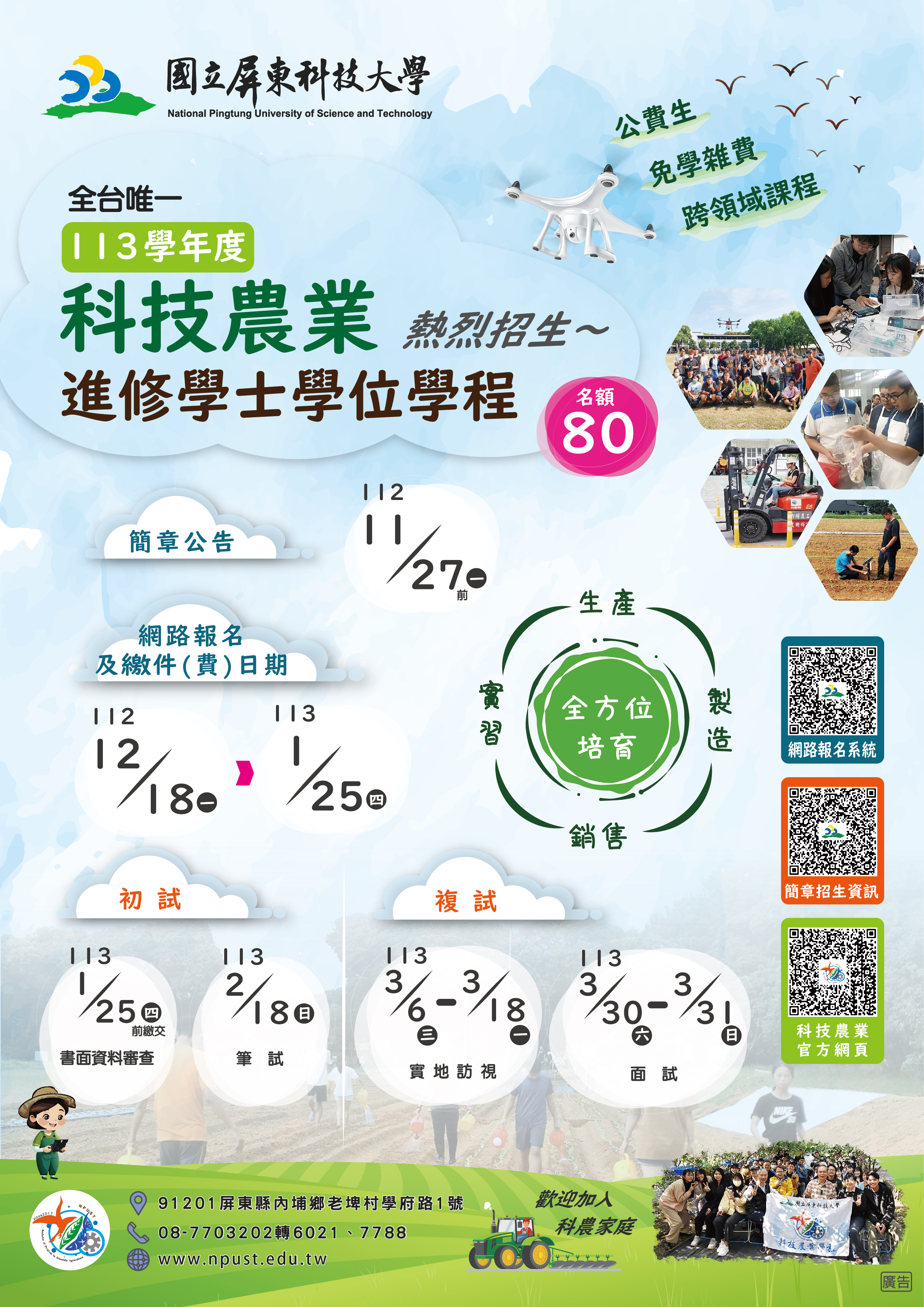 國立屏東科技大學113學年度科技農業進修學士學位學程公費班招生