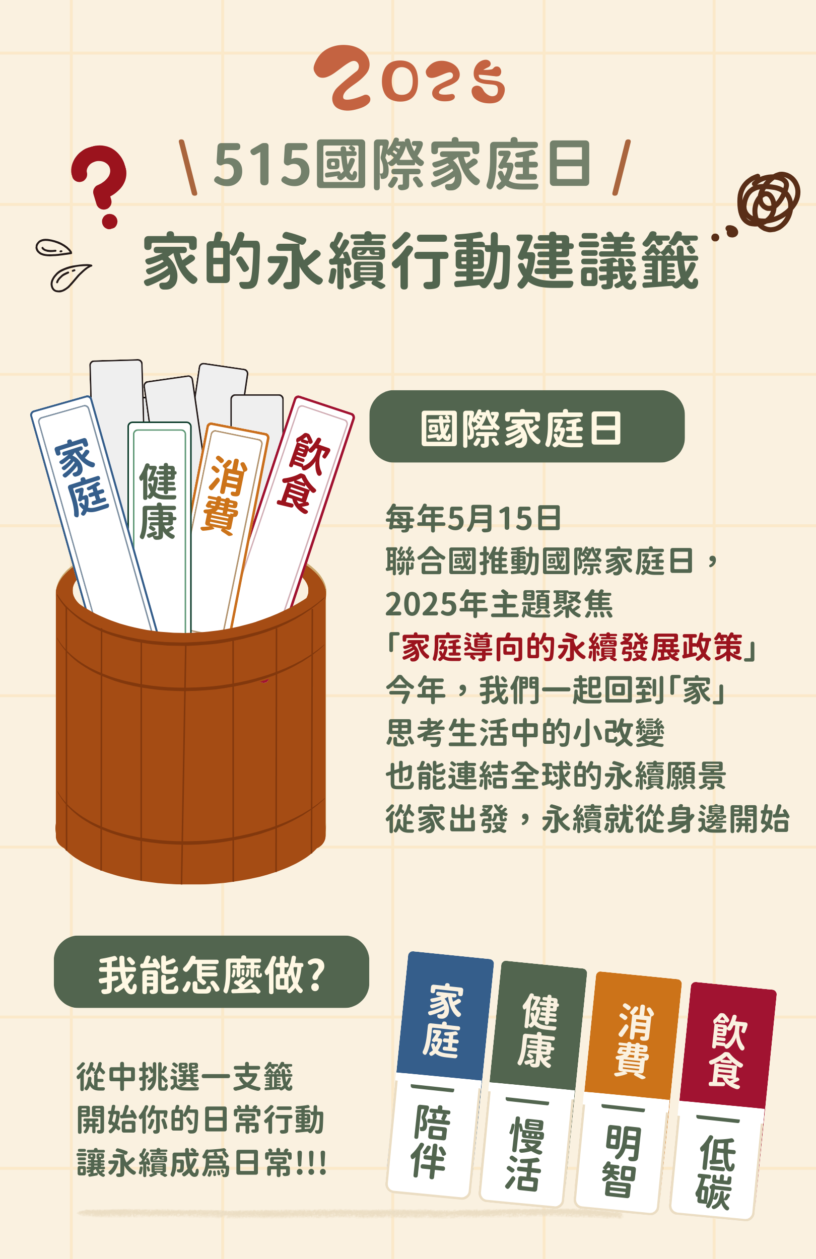 永續,從家庭做起 2025年 聯合國 國際家庭日主題「家庭與永續發展」 透過你我的家庭永續生活提案 傳承 共融 永續 讓家的生活力成為永續力 #家庭永續生活提案 #家的永續日常 #IYF30+ #515國際家庭日 #家政70comingsoon #高雄市岡山區農會